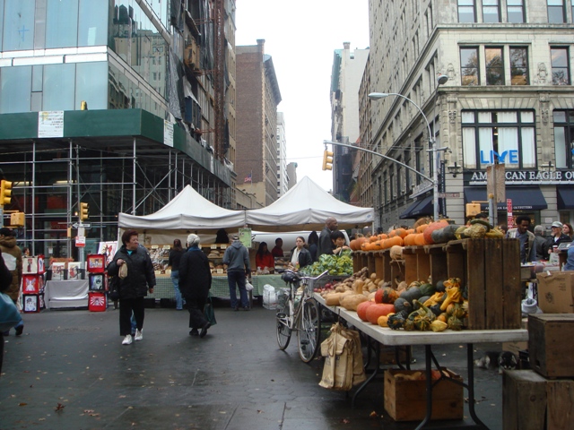 …entrar en Union Square en una de las plazas de la ciudad del centro del capitalismo y ver un mercadillo abierto todos los días donde los artesanos venden sus trabajos y los agricultores venden sus mercancías directamente sin intermediarios y asombrado llamas a Jorge para contárselo y decirle que te acuerdas de el.